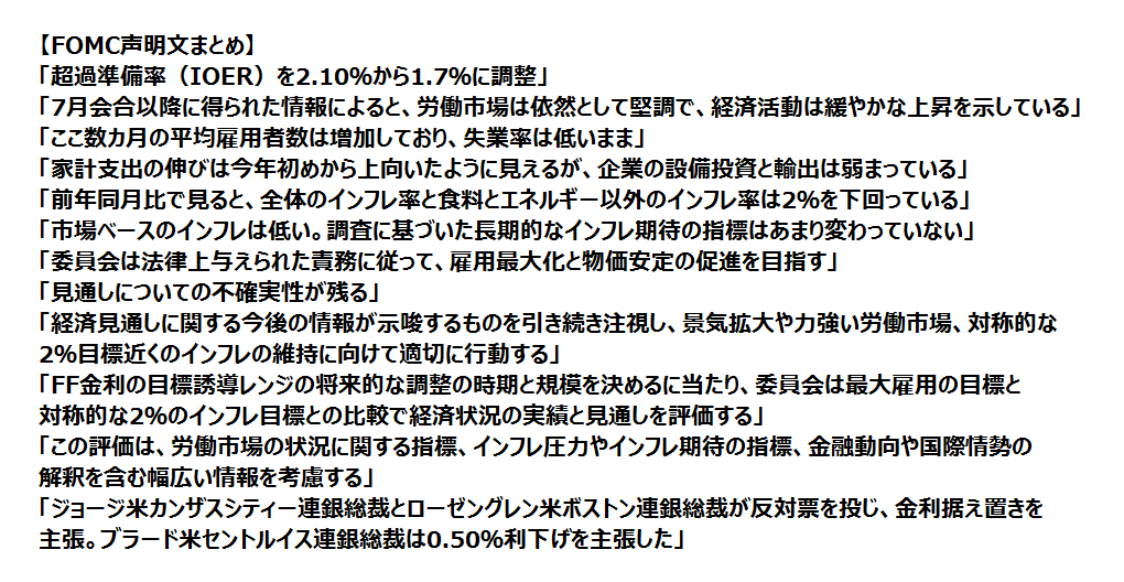こちらのツイートでアップされている画像を拡大しておく。【Dealer's Voice】— みんなのFX|トレイダーズ証券 (@Min_FX) September 18, 2019